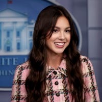 The pop star went for an all-plaid pink look when addressing the public from the White House.