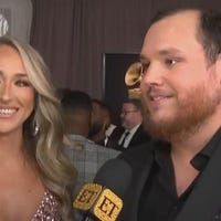 Luke Combs and his wife, Nicole, chat with ET on the red carpet at the 65th annual GRAMMY Awards, airing Sunday on CBS.