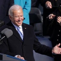 The former baseball legend is celebrating his fiancée's incredible moment at Joe Biden's inauguration ceremony.