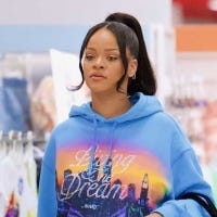 Rihanna was all smiles in the silver fit as she celebrated the launch of Fenty Beauty at Ulta Beauty in Los Angeles Saturday.