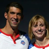 The Olympic swimmer kissed his son, Boomer, after winning two more medals on Tuesday night.