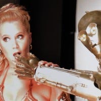 The 'Trainwreck' star chatted to ET all about the new magazine spread, featuring the 34-year-old comedian in bed with C-3PO and R2-D2.