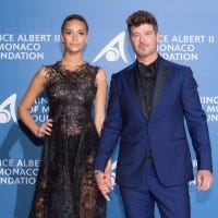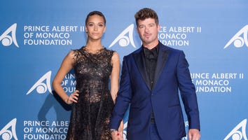 Robin Thicke and April Love Geary chat with ET's Kevin Frazier on the red carpet at the 25th BET Awards, airing live on BET.