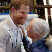 The Duke of Sussex reunited with Goodall at the Roots & Shoots Global Leadership Meeting.