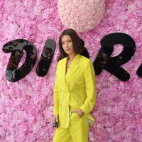 The It girl arrived in style at the Dior show in a sunny matching ensemble with coordinating makeup.