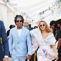 The singer and her husband, Jay-Z, attended the 'Black Panther' actor's birthday celebrations in Hollywood on Friday.