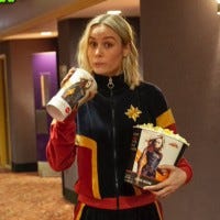 Larson served up concessions and surprised fans at a 'Captain Marvel' screening in New Jersey.