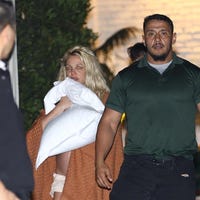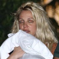 Britney Spears was seen wrapped in a blanket and in apparent distress as she left Los Angeles' Chateau Marmont on Wednesday.
