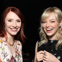 Emma Stone excitedly reunites with her ‘The Help’ co-star, Bryce Dallas Howard, on the set of 'Good Morning America.'