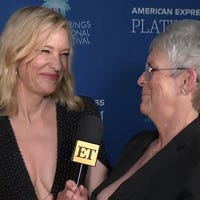 Jamie Lee Curtis and Cate Blanchett chat with ET backstage at the 2023 Palm Springs International Film Awards.