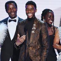Chadwick Boseman accepted the award alongside co-stars Angela Bassett, Lupita Nyong'o and Michael B. Jordan.