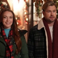 Lindsay Lohan and Chord Overstreet chat with ET about 'Falling For Christmas,' streaming Nov. 10 on Netflix.