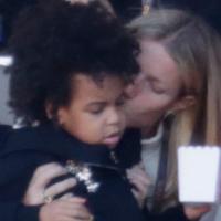The 43-year-old star Instagrammed a pic of the two girls sporting colorful jackets as they walked hand-in-hand prior to the start of the Super Bowl.