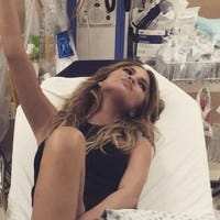 The model posted a pic of her posing in her hospital bed and told the world, 'I regret nothing.'