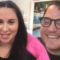 @girlwithnojob and @boywithnojob, aka Claudia Oshry and Ben Soffer, surprise one another in a game of 'Sip or Spill' with ET.