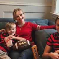 The actress and her boys noshed on Milk Duds and popcorn while watching the big game.