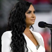 ET's Kevin Frazier caught up with Demi Lovato moments after she sang the National Anthem at the 2020 Super Bowl on Sunday.