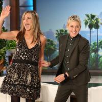 Jennifer Aniston hangs with two famous Justins on "The Ellen DeGeneres Show."