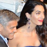 The stylish wife of George Clooney looked fabulous in a bright minidress at a Venice party.