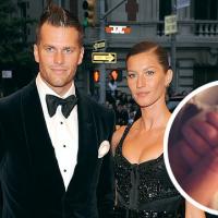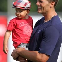 In what might be the most adorable series of photos ever, Tom Brady and wife Gisele Bundchen were snapped on Wednesday at Patriots Training camp in Massachusetts with their son Benjamin, and Tom's son Jack. First up, Gisele leans in for a kiss while Tom
