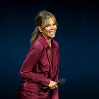 Halle Berry chats with ET's Cassie DiLaura backstage at CinemaCon 2024 in Las Vegas.
