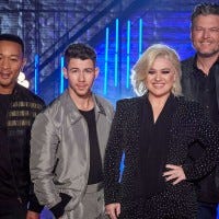 Blake Shelton, Kelly Clarkson, Nick Jonas and John Legend joined host Carson Daly for a remote press conference on Monday.