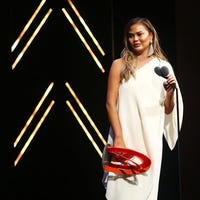 The model came to tears while accepting the Woman of the Year Award at 'Glamour' magazine's Women of the Year Awards: Women Rise event.