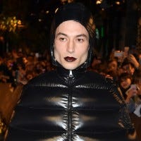 The 26-year-old actor made a dramatic fashion statement in a full head-to-toe black puffer ensemble and vampy dark lips.