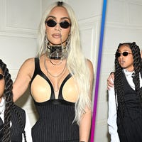 Kim Kardashian and North West wear matching outfits and nose rings while attending a show at Paris Fashion Week.
