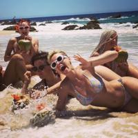 The 'Chained to the Rhythm' singer is enjoying vacation with her friends.