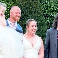 A newlywed couple got an unexpected surprise on their wedding day when Keanu Reeves made a guest appearance at the reception.