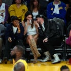 Kendall Jenner wears a custom plunging suit jacket and skirt, while sister Kylie rocks a sheer corset and high slit at the 2025 Met Gal