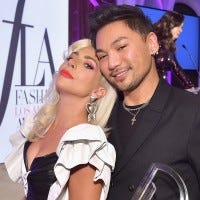Lady Gaga presents longtime friend, Frederic Aspiras, with the Hairstylist of the Year Award.