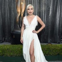 The 'A Star Is Born' leading lady wowed in white at Sunday's award ceremony.