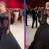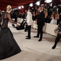 Lady Gaga helps a photographer who fell on the red carpet at the 2023 Academy Awards.