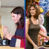 Courteney Cox jokingly tries to clear up the rumor that she's just like her 'Friends' character, Monica, with help from Laura Dern.
