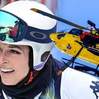 Lindsay Vonn returns home from the Milan Winter Olympics in a hospital bed, after suffering a ‘complex leg fracture’ while skiing.