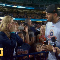 Shortstop Carlos Correa surprised his girlfriend of one year, Daniella Rodriguez, with a giant sparkler after winning Game 7 on Wednesday.