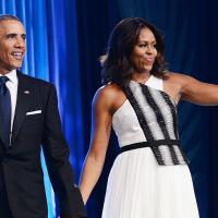 The first lady stole the spotlight in a strapless gold gown while Barack Obama spoke the final time as president.