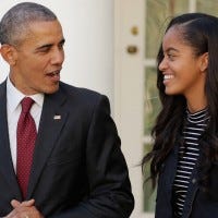 POTUS was all smiles as his eldest daughter received her diploma from the Sidwell Friends School on Friday.