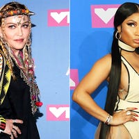 The rapper appears to be shocked when she locks lips with the Queen of Pop.