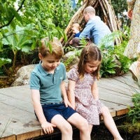 The royal siblings helped their mom gather moss, leaves and twigs for the RHS Back to Nature Garden.