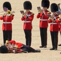 The member of the Band of the Welsh Guards had to be carried out by stretcher.