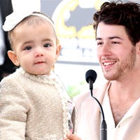 Nick Jonas shows some love to his and wife Priyanka Chopra's daughter, Malti, by giving her a kiss during a show in Orlando.