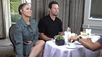 Ronda Rousey chats with ET’s Brice Sander at the 'Stars On Mars' VIP event in Los Angeles.
