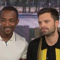 ET spoke with Mackie and Sebastian Stan at Disney's D23 Expo on Friday.
