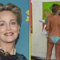 Sharon Stone shares a look at herself painting while topless on Instagram.