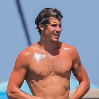 Shawn Mendes enjoys a boat ride and beach day with friends in Ibiza.
