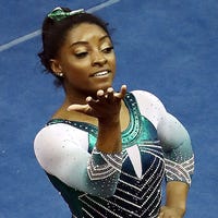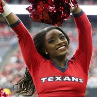 The Olympic gymnast strutted her stuff at NRG Stadium in Houston, Texas, on Sunday.