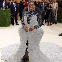 Simone Biles wears an 88-pound dress as she arrives at the 2021 Met Gala.